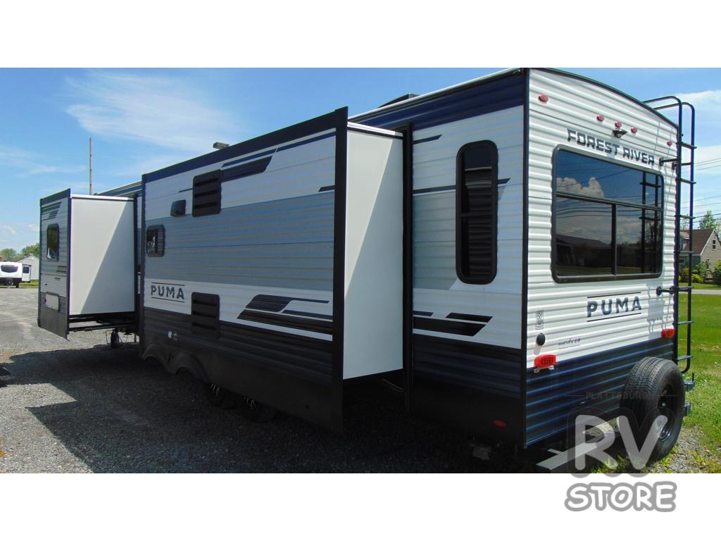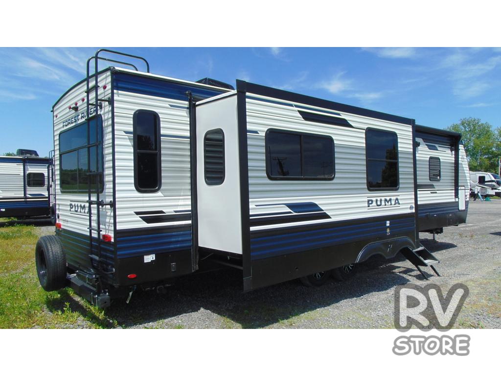 If you're looking for family-fun adventures then you need one of these Palomino Puma fifth wheels or travel trailers! They are built rugged, easy to tow, and jam packed with features. The Darco wrapped underbelly will protect your units vitals through every season and the AlphaPly roofing membrane covers it. They also have new aluminum wheels and a powder coated steel I-beam frame. Inside, the Congoleum linoleum will be easy to keep clean, and the night roller shades will provide privacy when it's time to turn in. You'll also enjoy an electric awning with an LED light strip plus an AM/FM/Bluetooth stereo and two outside speakers to keep the party going!