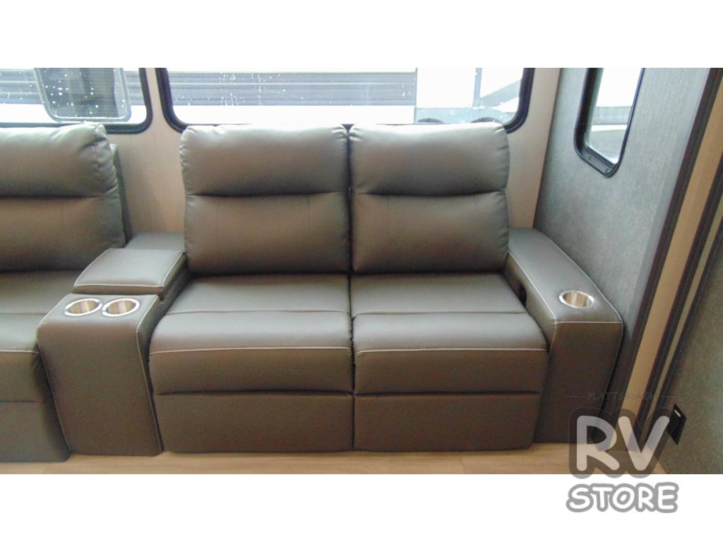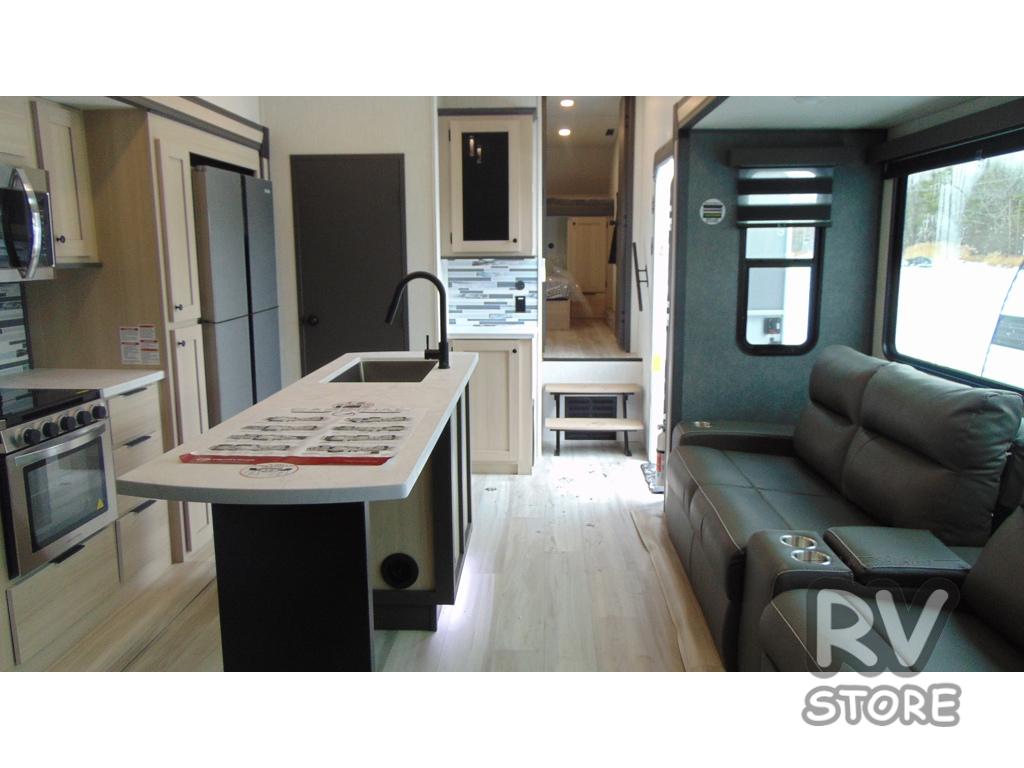 With any Cardinal fifth wheel by Forest River, you will enjoy affordable luxury at every turn. These models are constructed with residential fiberglass insulation in the roof and floor, a heated and enclosed underbelly armor, and a vacuum bonded, welded aluminum structure for added strength and durability. You will also find seamless roto-cast holding tanks, an outdoor shower, and 4-point auto leveling for quick and easy setup. There are carpet-free living spaces, residential backsplash, motion lighting throughout, and many more comforts!