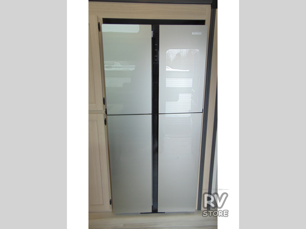 If you're ready for fun, look for further than this dual entry Cardinal fifth wheel! It will be so easy to travel with friends and family since there is a master bedroom with a 66" x 80" king bed and a full rear bath, plus a front bunkhouse suite with bunk beds, a full-size bed, and a second full bath! The chef of your crew can whip up breakfast in the morning on the 21" 2-in-1 oven range or in the over-the-range microwave. There is also a 16-cu. ft. 12V refrigerator and walk-in pantry for food storage! The super sofa slide out sits across from the entertainment center and fireplace for easy viewing in the evening, or you may just find yourselves outdoors visiting with campground neighbors!