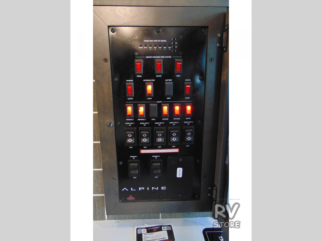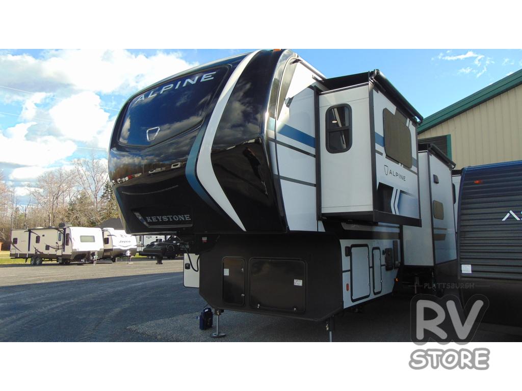 Luxury is not an option, it is a standard with each one of these Keystone RV Alpine fifth wheels! A 8' 4" wide body construction will create an open, residential feeling, and cutting-edge technology will provide a hassle-free camping experience. The Tru-Fit slide construction is more durable and minimizes motor structural stress, as well as resists leaking, and the Blade Pure airflow system provides residential comfort with its high-performance. Each fifth wheel includes designer flooring throughout, stunning solid wood cabinet doors, luxurious crown molding, and solid surface countertops in the kitchen. The exterior also includes an outside shower with hot and cold water, Lippert strut assisted SolidSteps, Hitch Vision with LED lighting, and many more conveniences!