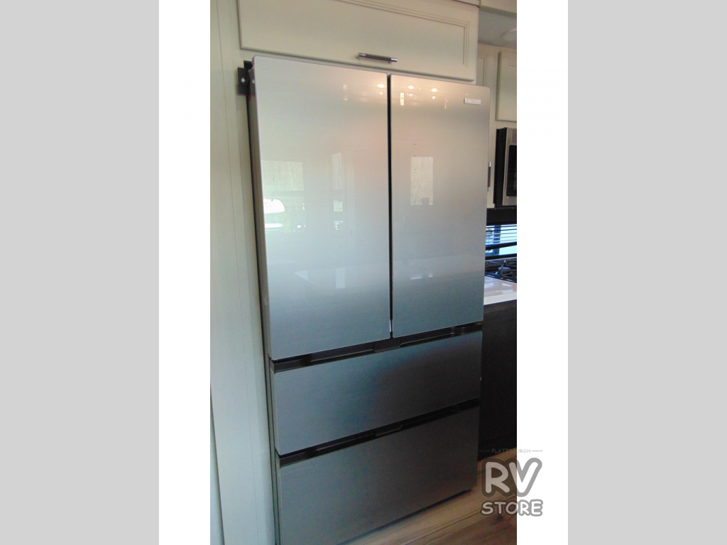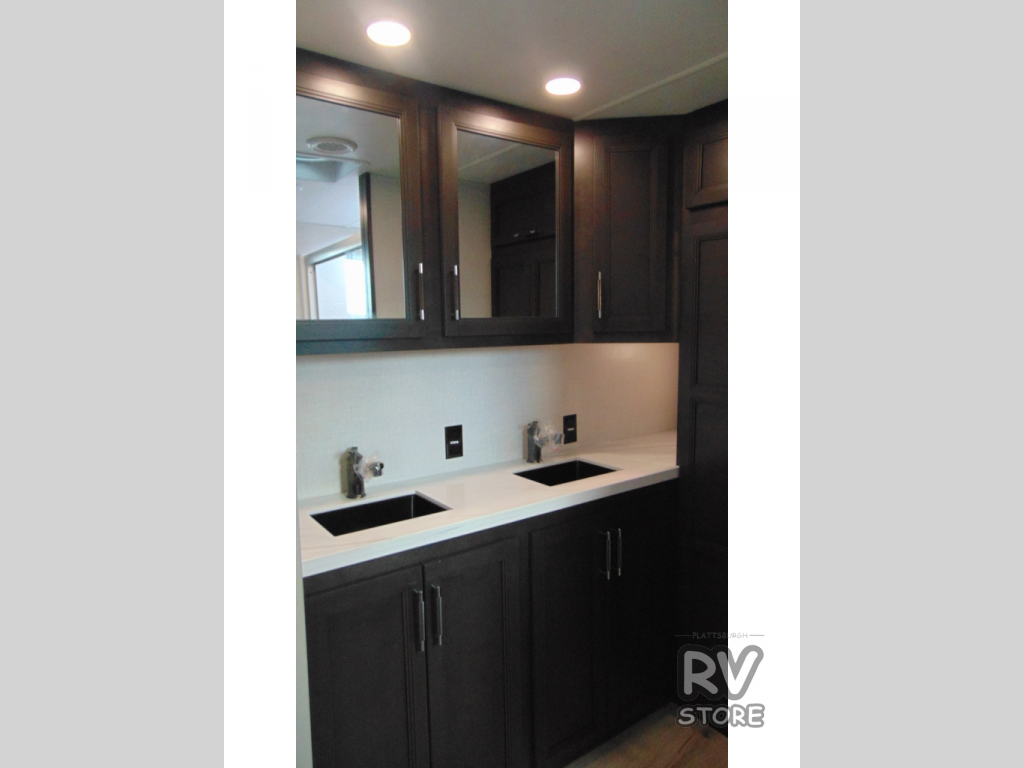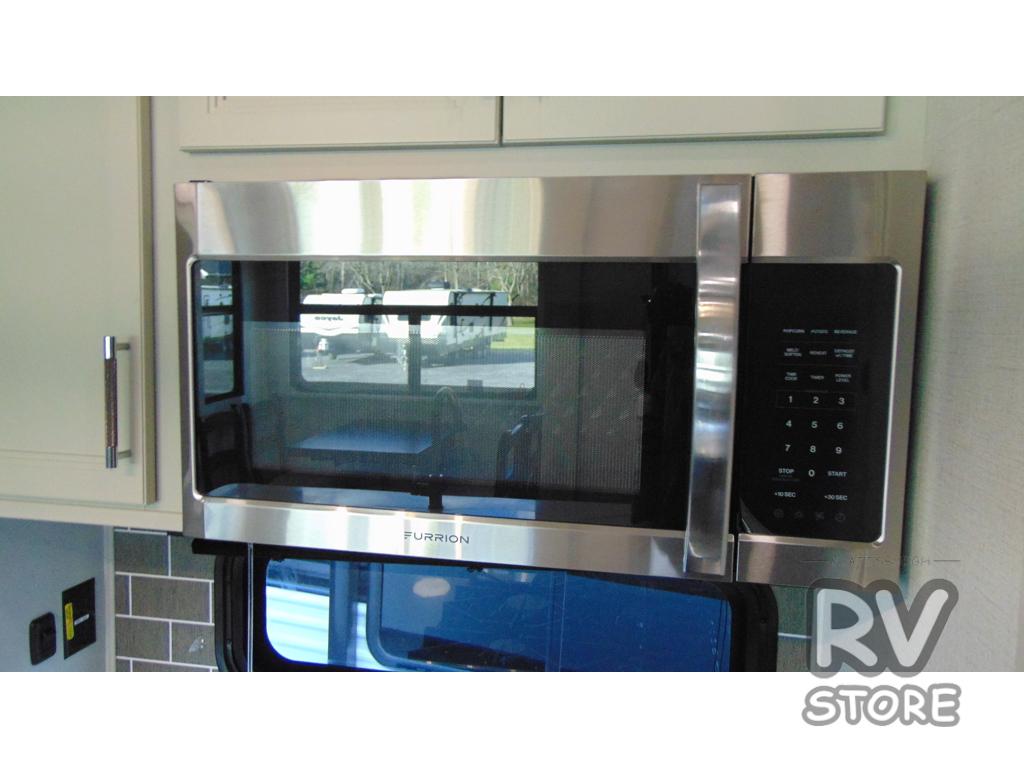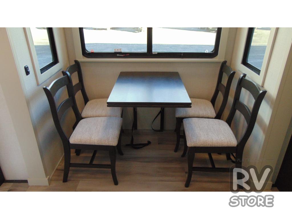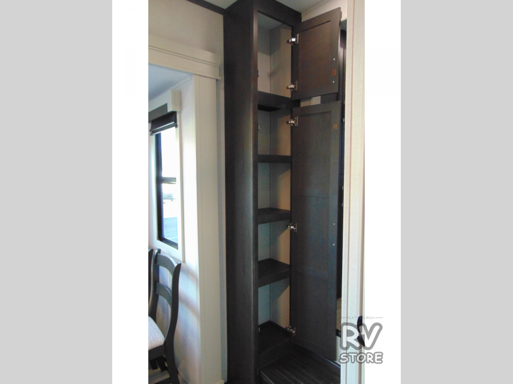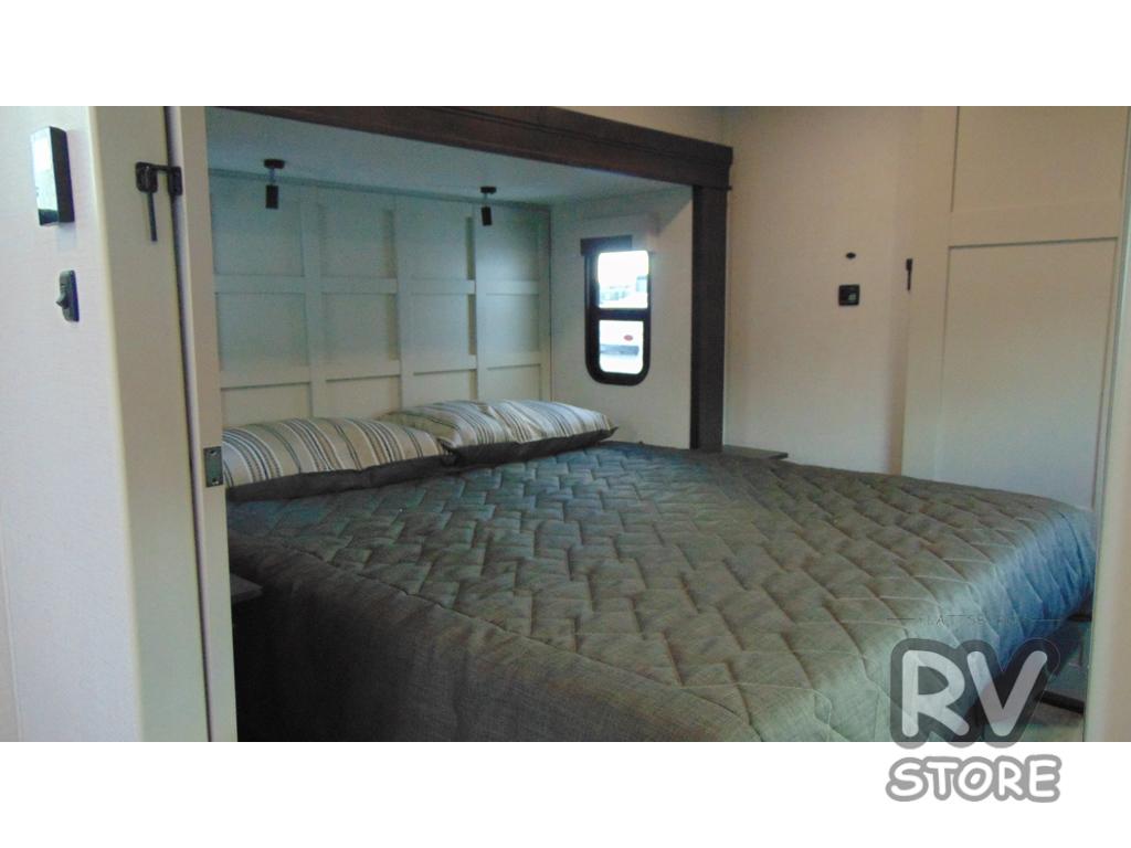 Find the comfort and luxury in this fifth wheel! Imagine your morning coffee on the spacious middle kitchen, and prepping your favorite breakfast on your kitchen island with a sink, making for a good meal-prep zone for endless cooking possibilities. You can start your favorite movie queued up in the living room with dual hide-a-bed sofas and a fireplace that sets the mood for comfort and delight every day. When it is time to unwind, your private rear bedroom welcomes you with a king bed, smart storage, and soft lighting that turns travel into rest, featuring a master bathroom with all you need to freshen up and treat yourself with plenty of storage, a dual sink vanity, and space for a washer/dryer prep for your convenience.