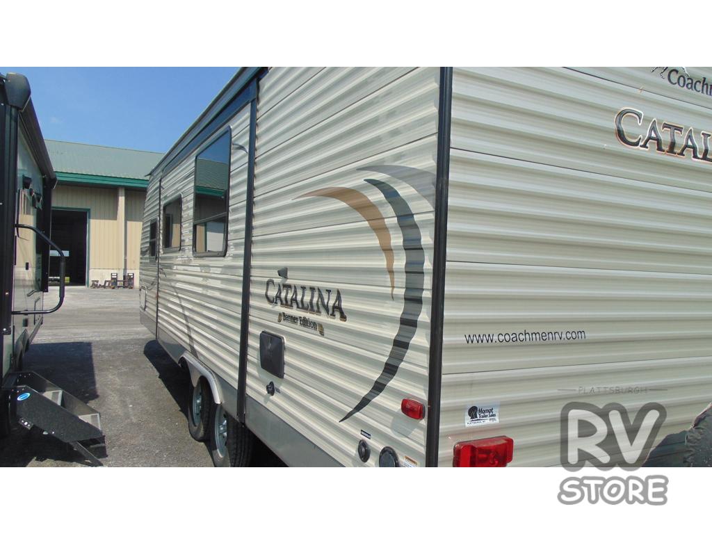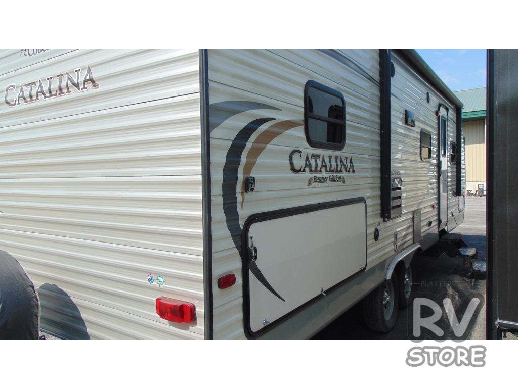 Enjoy every camping adventure in this Coachmen Catalina travel trailer model 273DBS featuring a set of bunks, a rear bath layout, a large single slide for added space, and optional camp kitchen too!