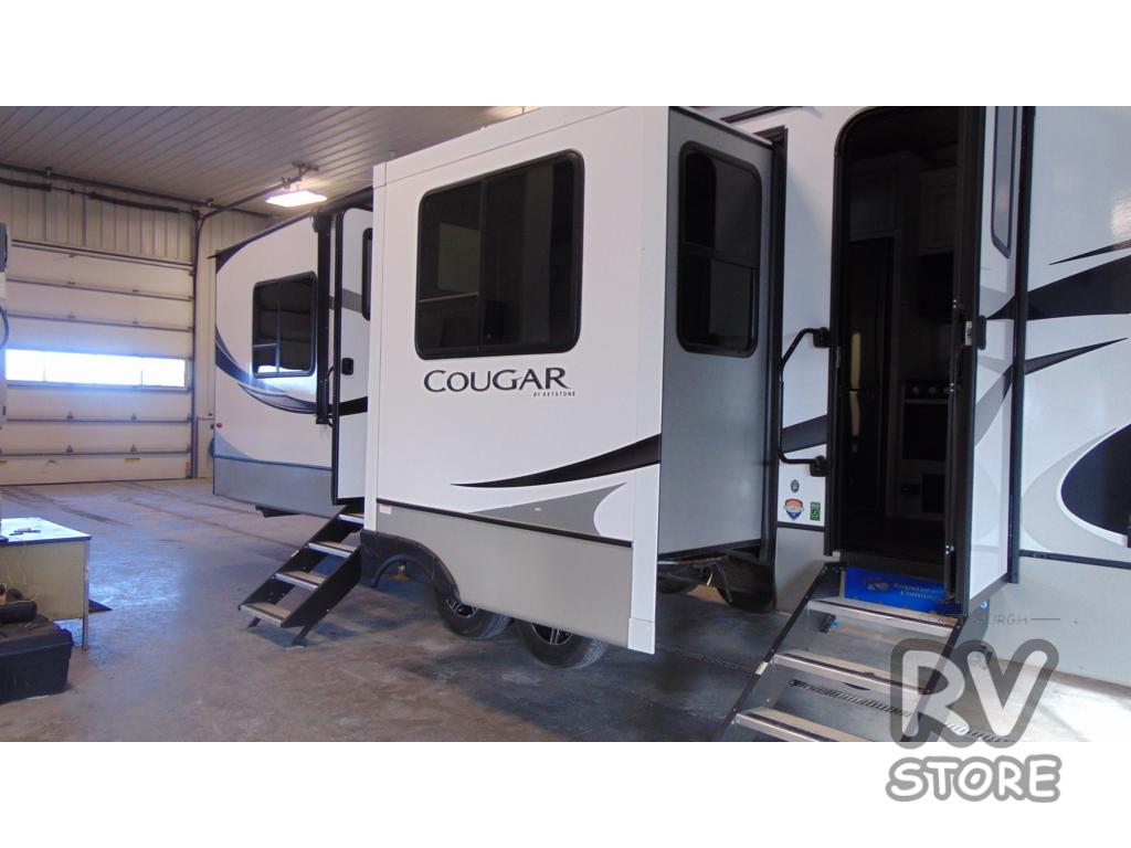 With any Keystone Cougar fifth wheel and toy hauler you will experience the MaxTurn technology which enables you to maneuver easily into the campsite, and the electric four-point auto leveling system makes it easy to set up too! The heavy duty axles with never-adjust brakes and Road Armor™ shock absorbing equalizer makes for a smooth trip. With a Climate Guard protection package and 12V electric heat pads on all holding tanks, you can camp anytime of the year. The 5/8" one-piece DynaSpan® flooring is easy to clean so live out your dreams, choose your favorite Cougar today!