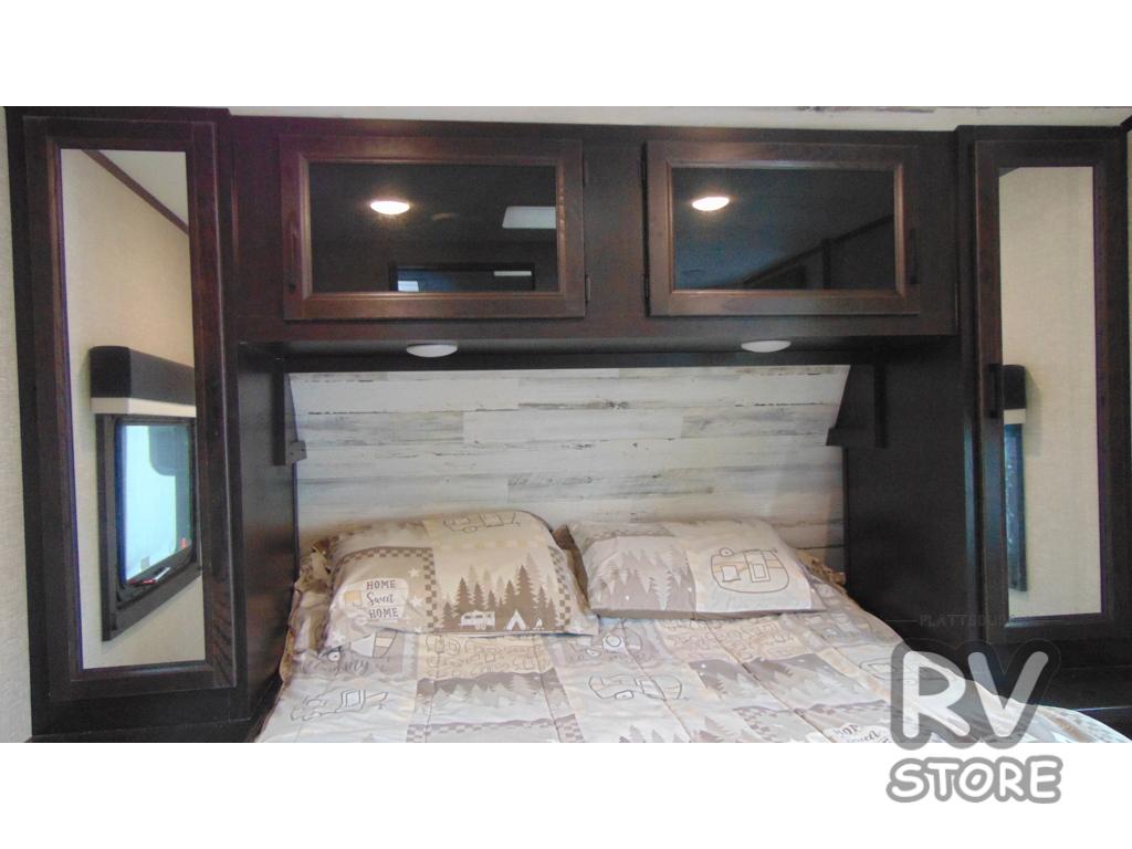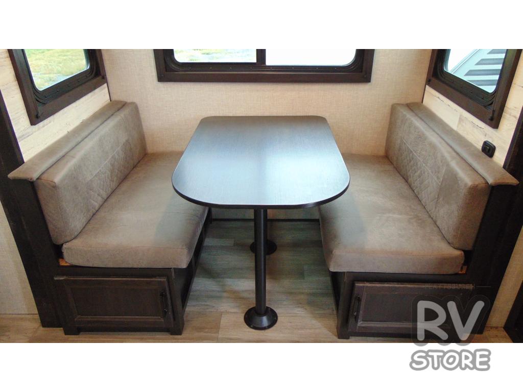 Camp at a local state park or travel to see new places with this trailer that can sleep four when you utilize the furniture as sleeping space. Two can sleep in the front bedroom on a queen bed with dual wardrobes and includes access to the double entry bathroom, while two others sleep on the booth dinette slide out, and the rear jackknife sofa. There is an LED TV in the main area to watch while everyone plans their activities or while the cook makes meals using full amenities. There is an outside fridge to store more cold items which is super handy when you are relaxing outside under the 20' power awning. You might even like to add a few options, take a look at the list.